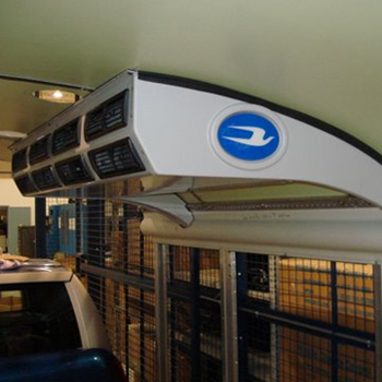All American FE ACBlue Bird’s integrated Comfort Aire A/C offering provides greater efficiency and quality than competitor aftermarket systems because the Comfort Aire system is designed in harmony with other OEM installed components.